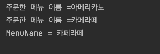 System.out.println("주문한 메뉴 이름 ="+ menuName );