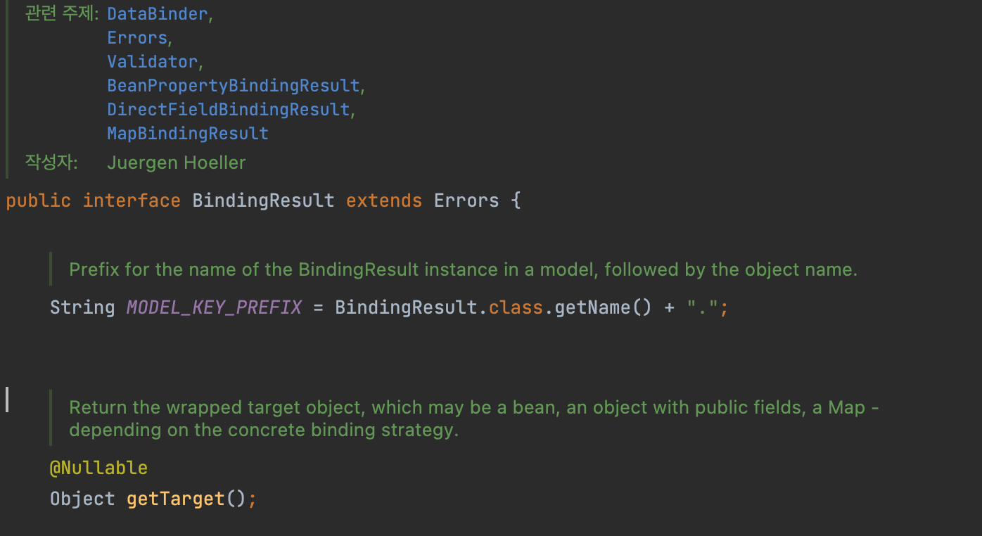 BindingResult은 객체 바인딩을 반환해주는 메서드입니다. 객체를 까 보면