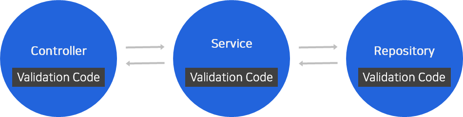 하드코딩으로 만든다면 각각의 계층에서 연속적으로 검증을 해줘야 하는 번거로움이 있습니다. 또한 검증 로직이 변경될 경우 각 계층을 같이 봐야하는 어려움이 있습니다.
