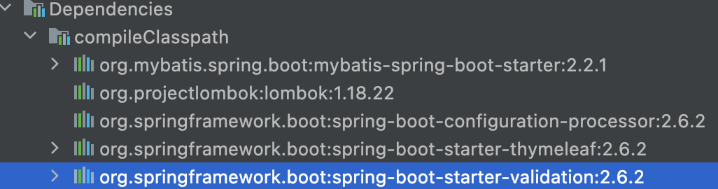 implementation 'org.springframework.boot:spring-boot-starter-validation'
