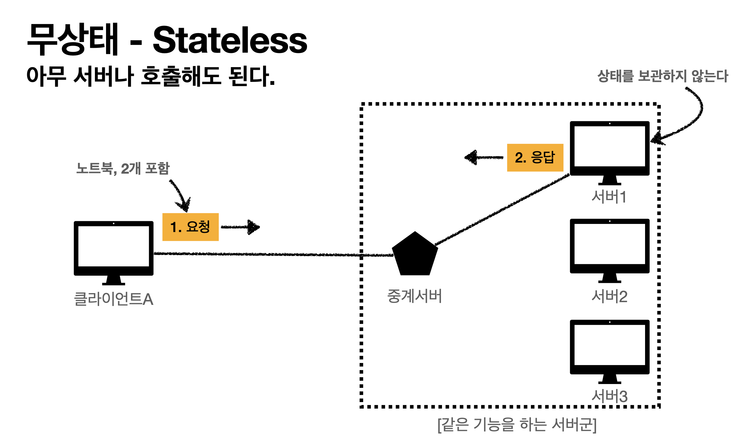 서버가 클라이언트의 상태를 보존하지 않습니다.(중요!)