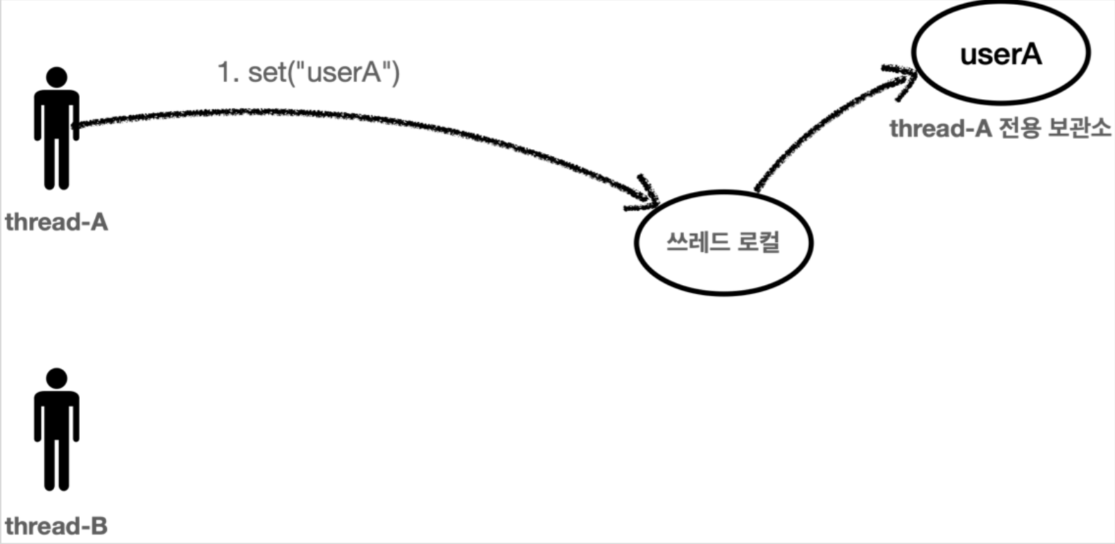 Thread A가 userA라는 정보를 저장하게 되면 ThreadLocal은 Thread A 저장 보관소에 보관하게 됩니다.