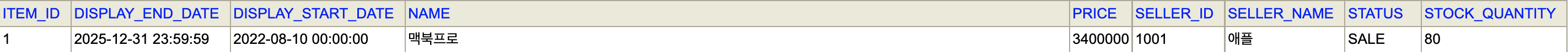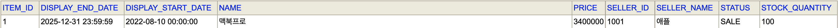 해당 상품으로 테스트를 진행해보겠습니다. 상품 테이블에 맥북의 재고가 100개가 저장되어있습니다.
