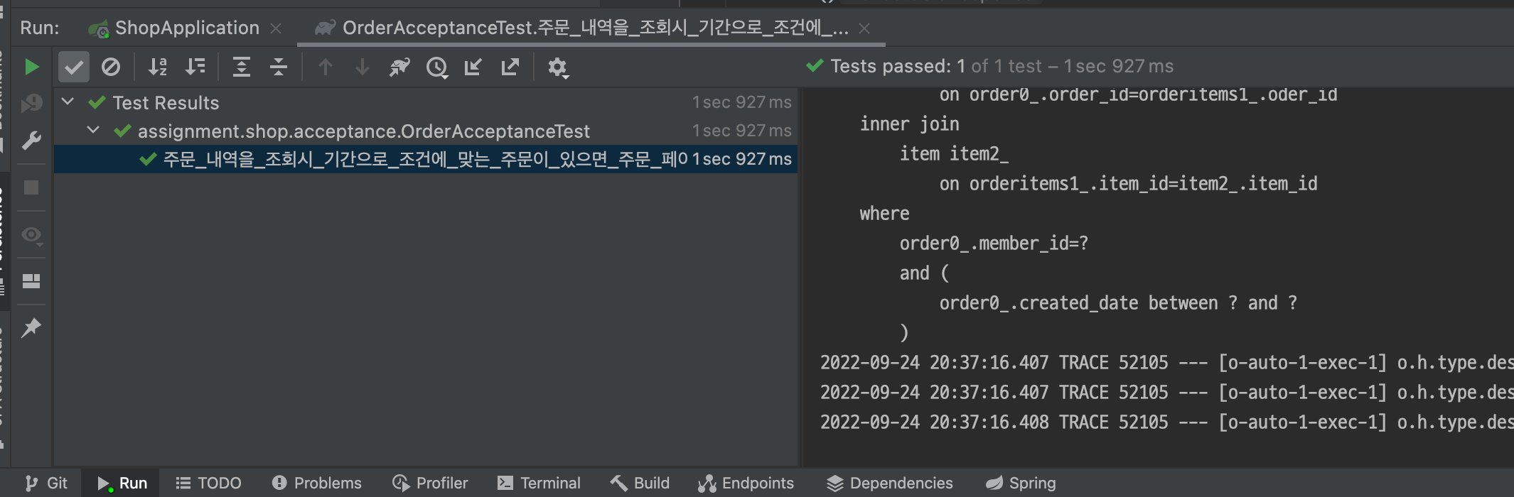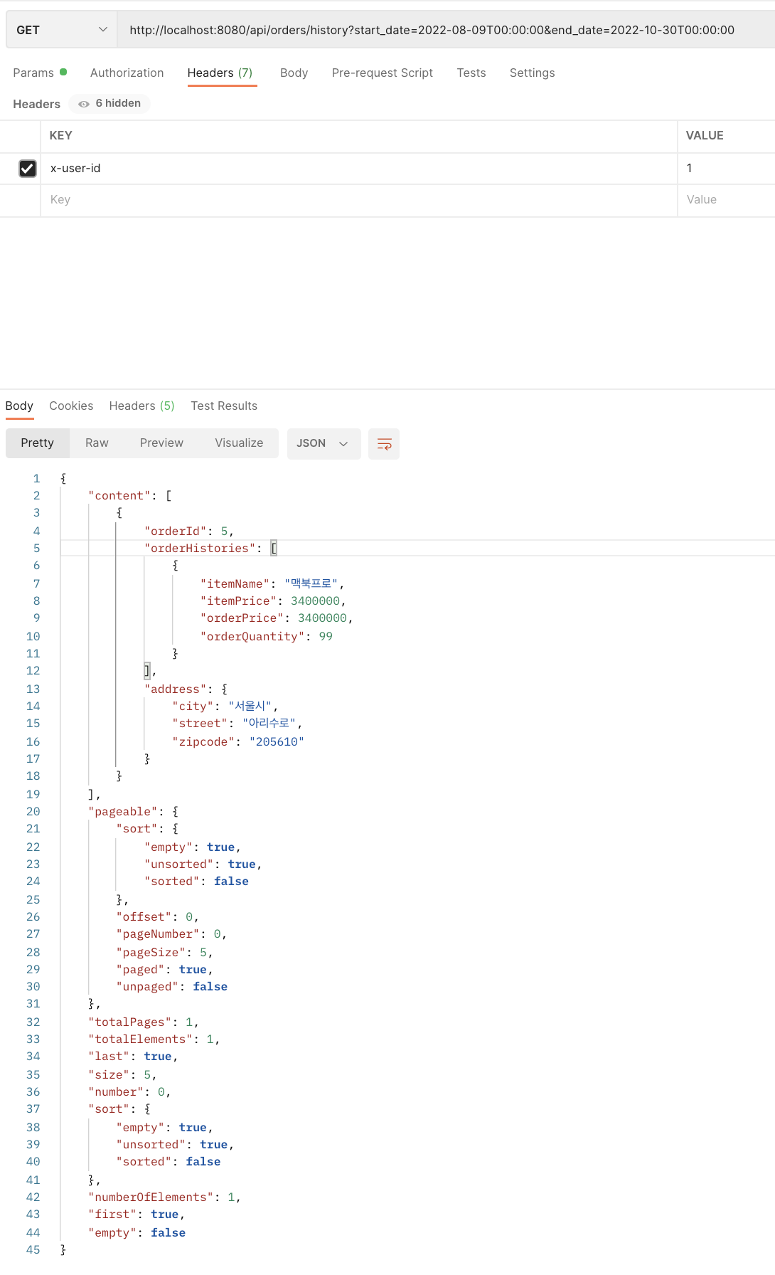 Page<Order> orders = orderRepository.findByUserIdAndDateCondition(memberId, startDate, endDate, pageable);