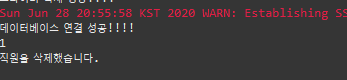 이제 삭제 부분을 보겠습니다. 방금 삽입했던 데이터부분을 삭제해보겠습니다.