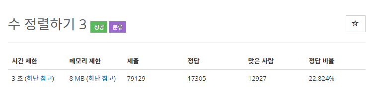 이렇게 시간제한이 있습니다. 그냥 정렬 알고리즘을 사용하면 런타임 오류가나옵니다. 수의 범위가