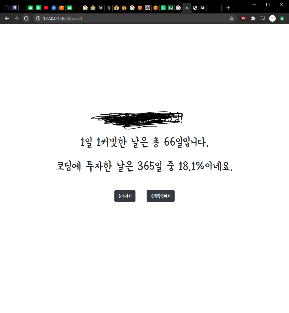 <h1>코딩에 투자한 날은 365일 중 {{day}}%이네요.</h1><br><br>